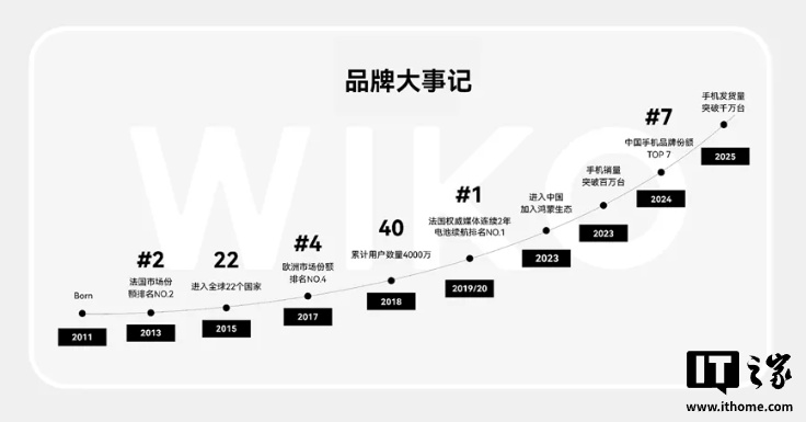 据 WIKO 唯科官方介绍,2023 年,WIKO 进入中国市场并加入鸿蒙生态;同年收获了首个百万用户。WIKO 品牌份额同比增长 86.4%,成为今年成长最快的智能手机品牌。目前,WIKO 已成功跻身中国全价位段智能手机品牌 TOP7、中国入门级智能手机品牌周度排名 TOP 1。