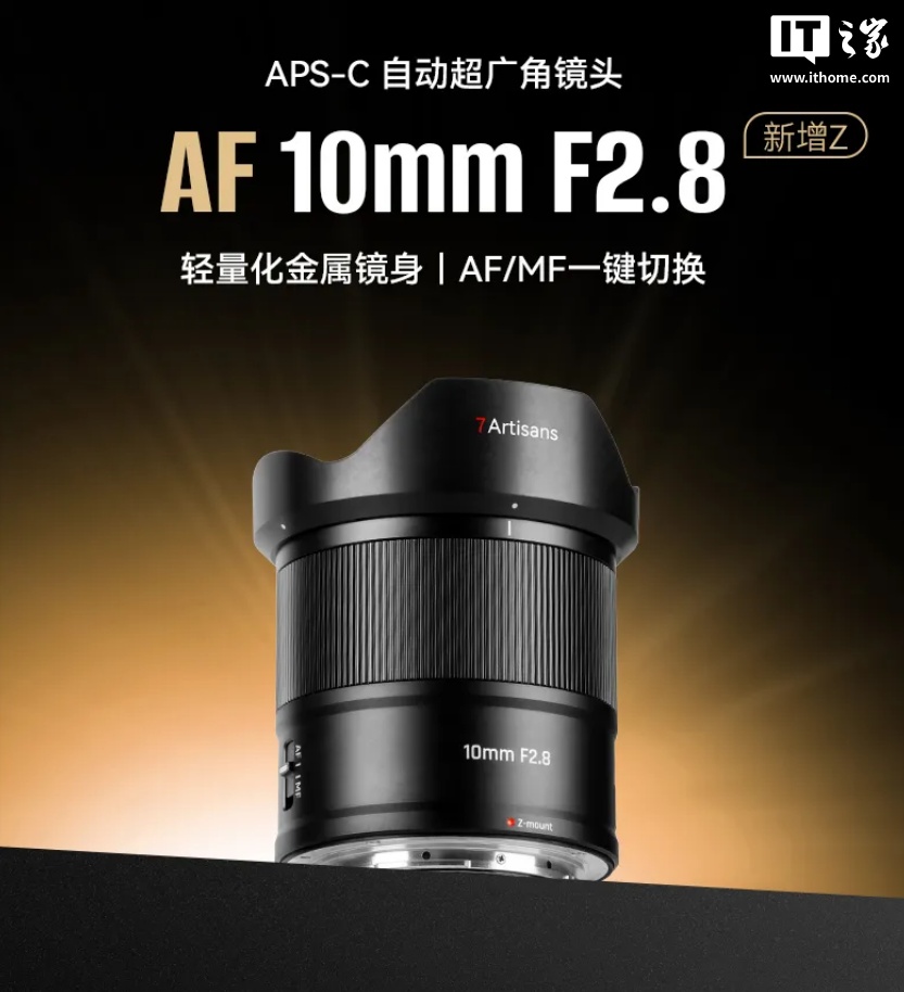 alixixi 11 月 10 日消息,七工匠 AF 10mm F2.8 APS-C 镜头今日新增尼康 Z 卡口版,首发价 899 元。