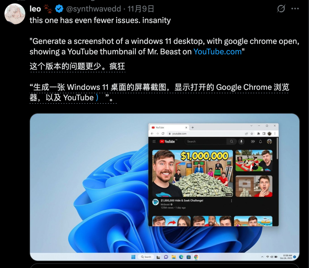 预览版展示出的能力已远超前代,在处理复杂提示方面的表现突出,包括精确的文本渲染、超逼真的场景以及类似完整桌面界面的精细模拟。