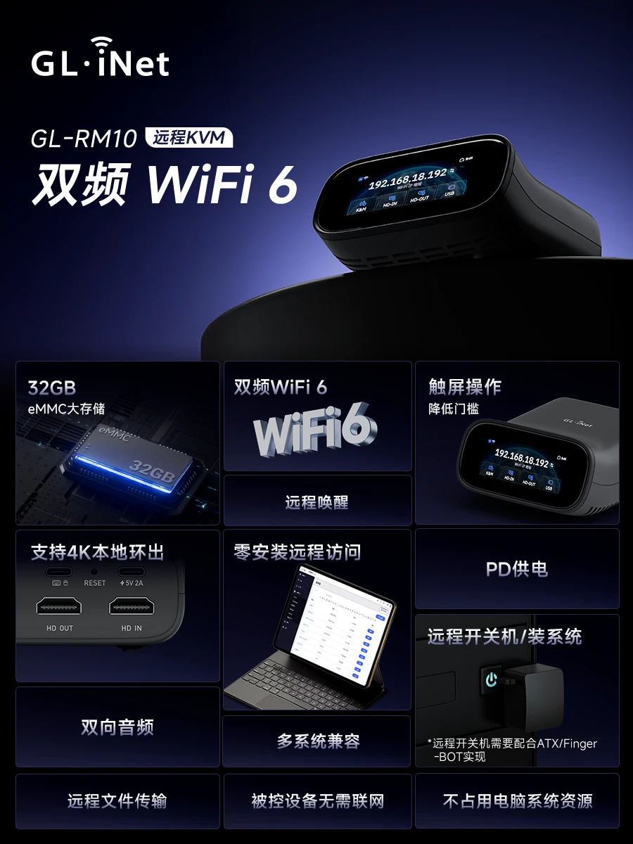 alixixi 11 月 10 日消息,GL.iNet 广联智通宣布,其基于 Wi-Fi 的 KVM 远程控制终端设备 Comet Pro (GL-RM10) 即将于 11 月 17 日 10:00 开售。