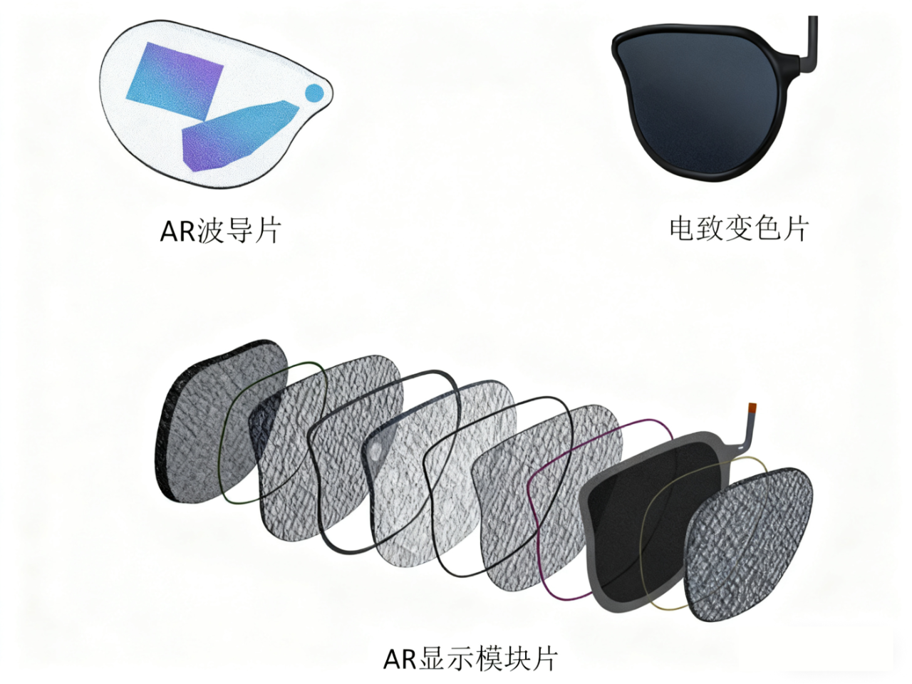 ● 后装的方法:在已经完成设计及生产的AR眼镜上进行柔性贴膜,均适用于阵列、衍射、全息等波导方案的智能眼镜产品。