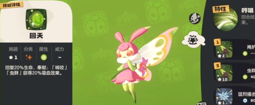 草衣虫拥有一个名为“哼唱”的专属特性,每回合结束时有一定概率触发“奉献”效果,这一机制能有效提升其续航能力和战场持久度。由于草衣虫本身具备较高的生命值,适合担任团队中的前排担当,能够吸收大量伤害,保护后排输出。虽然它的攻击速度偏低,但配合控制类技能,可以在关键时刻干扰对手节奏。因此,草衣虫在阵容中扮演着攻守兼备的角色,既能抗压又能反制,是多种战术体系中不可或缺的一员。