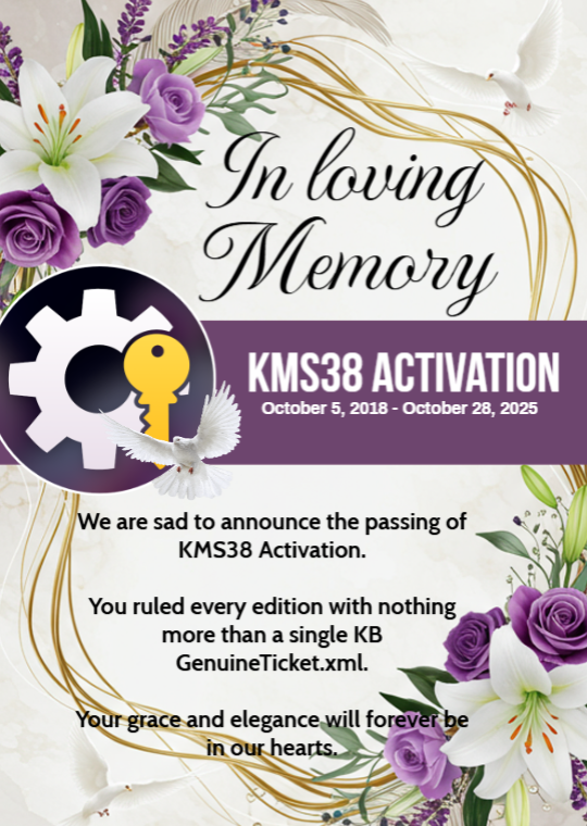 alixixi 11 月 12 日消息,开源 Windows 和 Office 激活工具 MAS(微软激活脚本)发布了最新的 3.8 版本,并宣布微软已在 10 月 28 日发布的最新 Windows 版本中彻底封堵了 KMS38 漏洞。