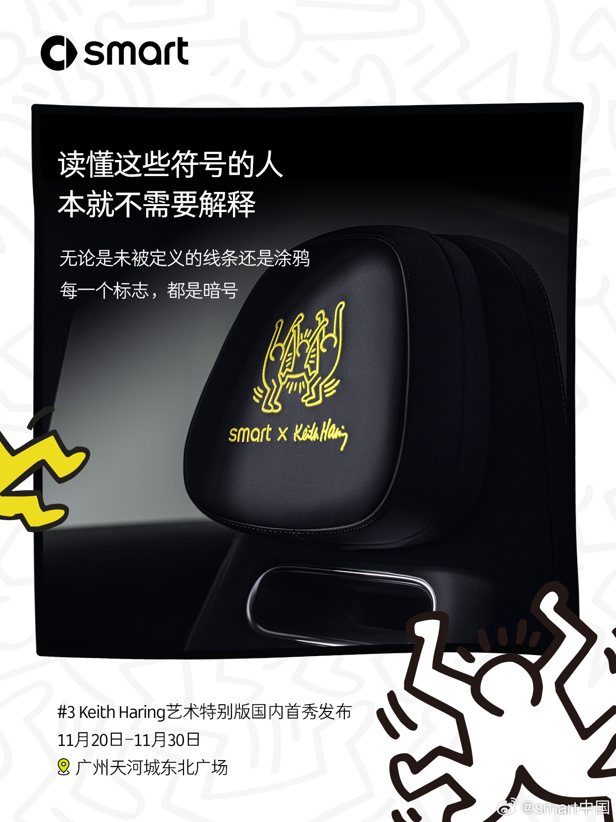 alixixi 11 月 12 日消息,smart 中国今日官方宣布,smart 精灵#3 Keith Haring 艺术特别版,将于 11 月 20 日限量发售。