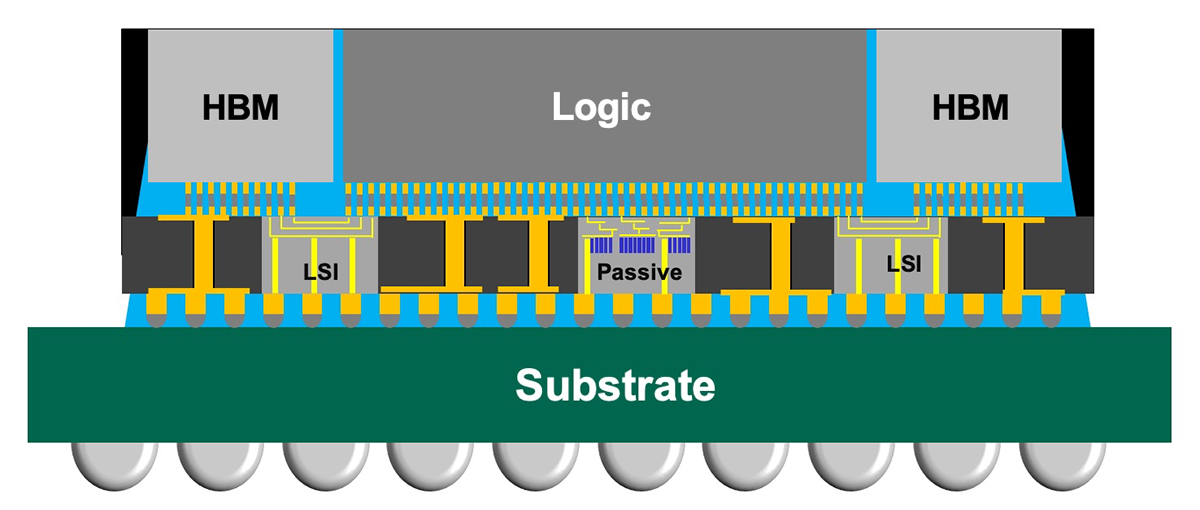 CoWoS-L 是台积电 CoWoS 技术的变体之一,结合了基于 RDL(alixixi注:重布线层)的桥接芯片以及 LSI(嵌入式本地硅互连),并支持集成嵌入式深沟槽电容器 eDTC 等附加元件。