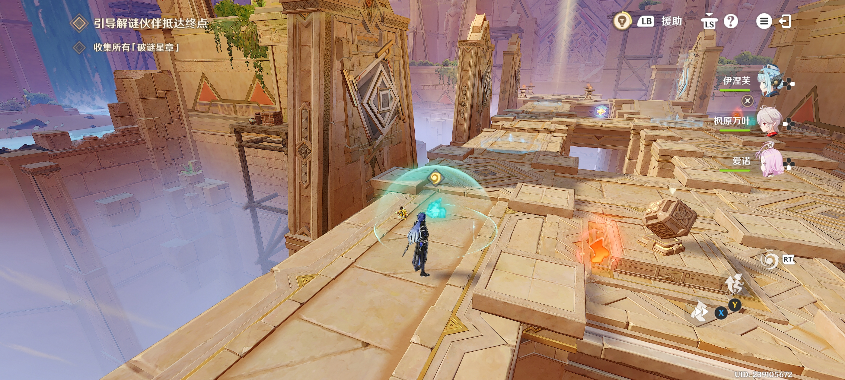 交互完后来到另一个机关旁,将[疾速奇效]拾取并放置在基座上,当解谜伙伴经过后就与一旁的机关交互即可。
