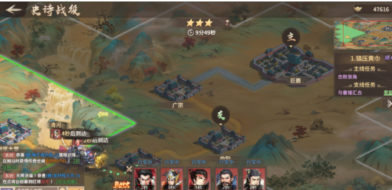 史诗战役前期的重点就是打牢根基,稳固队伍。系统赠送的武将张飞、太史慈、黄忠等都可以承担前期的输出或者控制任务。主力培养方面,要集中资源提高核心武将的等级、装备和技能,保证通关效率。通关时间的压缩要以熟悉地形、敌方兵种为前提,比如先消灭高输出或者控制型武将,再消灭辅助部队。前期要避免过早冒险,合理运用怒气技以及技能之间的配合,保证每次战斗都能达到任务的目的,拿到基本的奖励和星级,为之后通关高难度关卡打下基础。