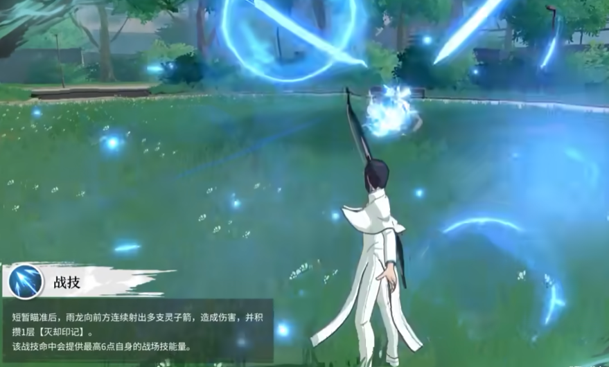 当石田雨龙释放战技以后会直接对着前面的敌人射出多支灵子箭,箭矢不仅能够造成伤害还能获得1曾的灭却印记,此外该技能最高还能够给石田雨龙提供6点的战场技能量。