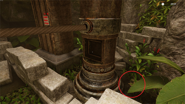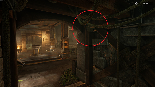 7、在绳索谜题的柱子后面。