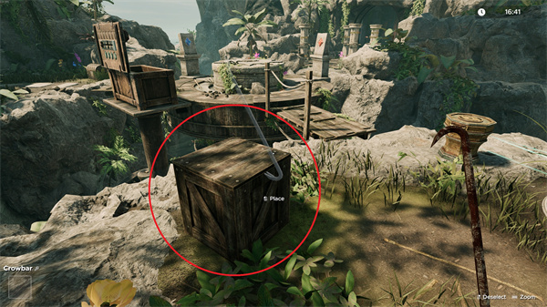 7、用撬棍打开蛇形谜题和桥之间的箱子。代币就在箱子里。
