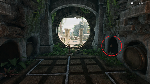 8、在火药谜题中,入口门旁的空酒桶槽里。