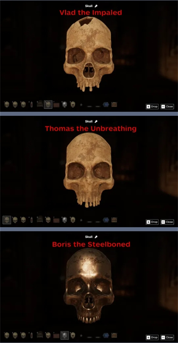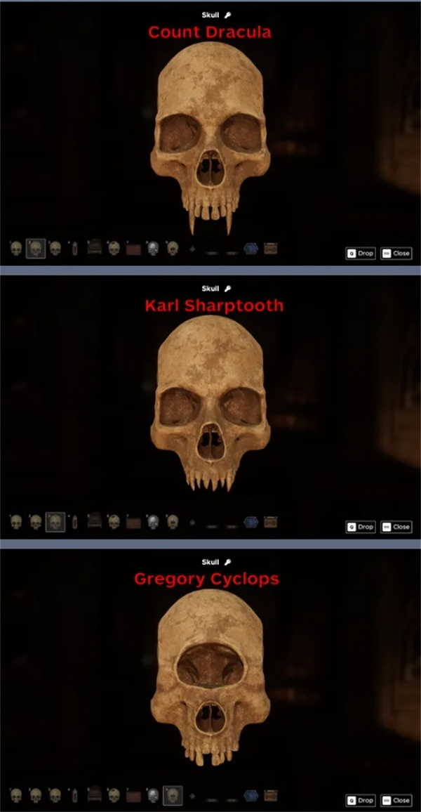收集6个骷髅,包括壁龛里的那个和地板上的那个。
