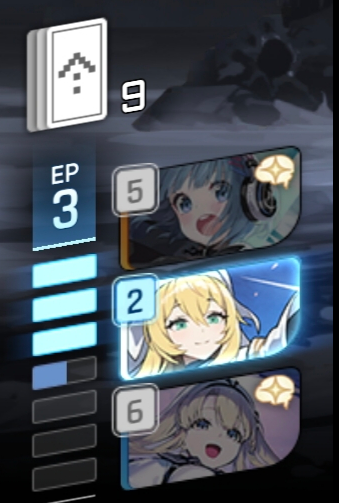自我意识核心的用途就在于发动角色的大招。计量单位是整数,在战斗界面的左下角就可以看到存量显示。每一次战斗开局时,ep还会自动的充能两格半,而之后每个回合就会开始固定回复0.5个。这就说明在纯挂机的状态下,二费伙伴技能在第1个回合就可以解锁,而三费技能则需要等到第2个回合。需要注意的是,ep并不会伴随着怪物的行动而减少,没有使用的这一部分就会持续的积累,直到通关目前的关卡才会重置。五星伙伴的强势之处,就在于通过消耗就能够提升单回合的伤害。