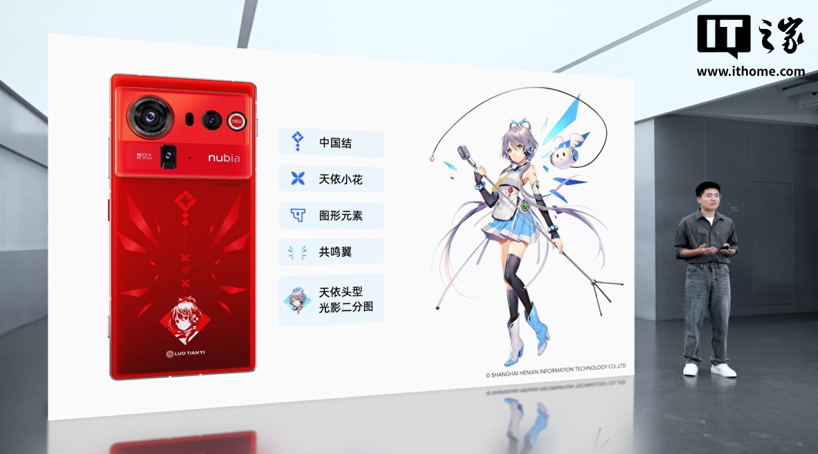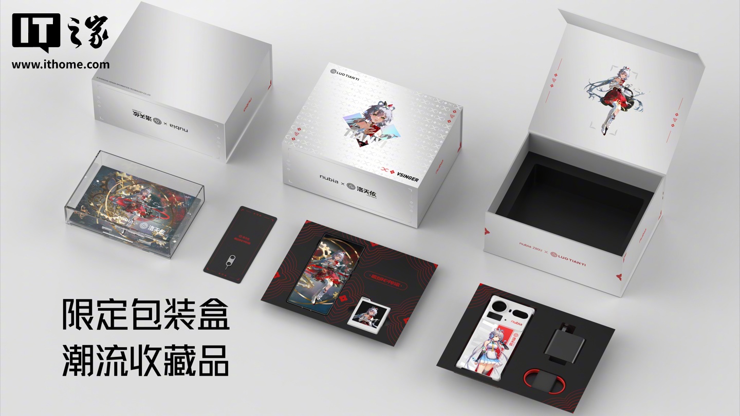 alixixi查询获悉,努比亚 Z80 Ultra 洛天依限定版手机仅提供 16GB+512GB 规格版本,售价 5799 元。该机拥有造型独特的共鸣翼、天依小花和图形元素、专属定制壁纸、开机动画、指纹解锁、洛天依专属水印、联名包装礼盒、洛天依专属插画的亚克力摆台、特别版洛天依手机壳等定制化内容。