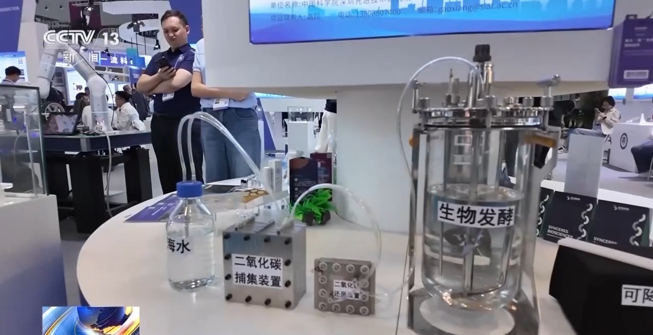本届高交会还聚焦海洋强国战略需求,推出了两项重要科技成果。中国科学院深圳先进技术研究院的“人工海洋碳循环系统”能够利用电催化装置从海水中提取二氧化碳,并将其还原为甲酸,再通过生物细菌转化为可降解塑料的原料,最终制成环保吸管和塑料瓶。该过程不仅绿色无污染,还能降低海水酸化,净化海水。
