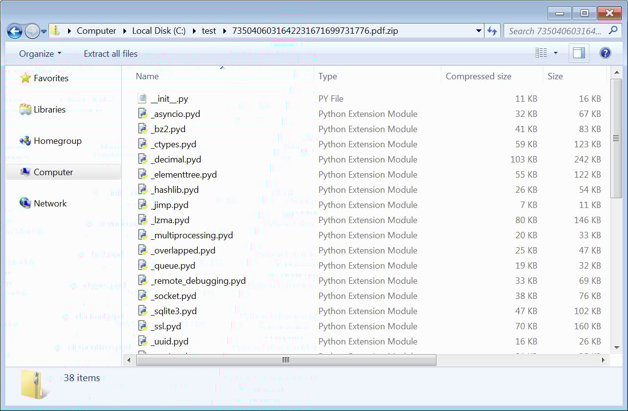 恶意脚本执行后,会立即展开一系列后续动作。它首先会创建一个随机命名的路径,并下载一个伪装成 PDF 文件的 ZIP 压缩包。解压后,其中的恶意载荷便会被激活。