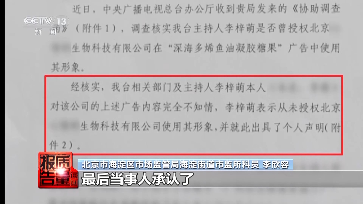 经监管部门核查及商家承认,该视频系通过剪辑加工李梓萌的公开新闻片段合成。该产品实为普通食品(糖果类),其宣传构成虚假广告,商家被处以 20 万元罚款。销售记录显示,该虚假视频上线半月内,带动涉事鱼油产品销售额达 6 万余元。