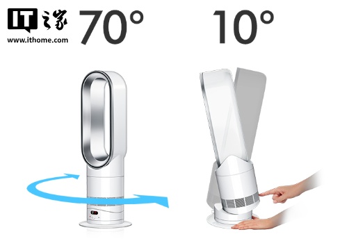 戴森 AM15 还支持左右 70° 送风角度调节、上下 10° 送风角度调节,机身尺寸为 152×115×585mm。