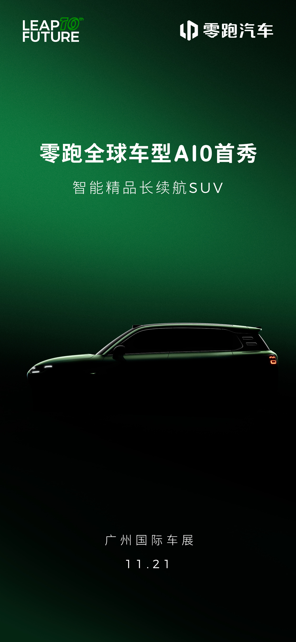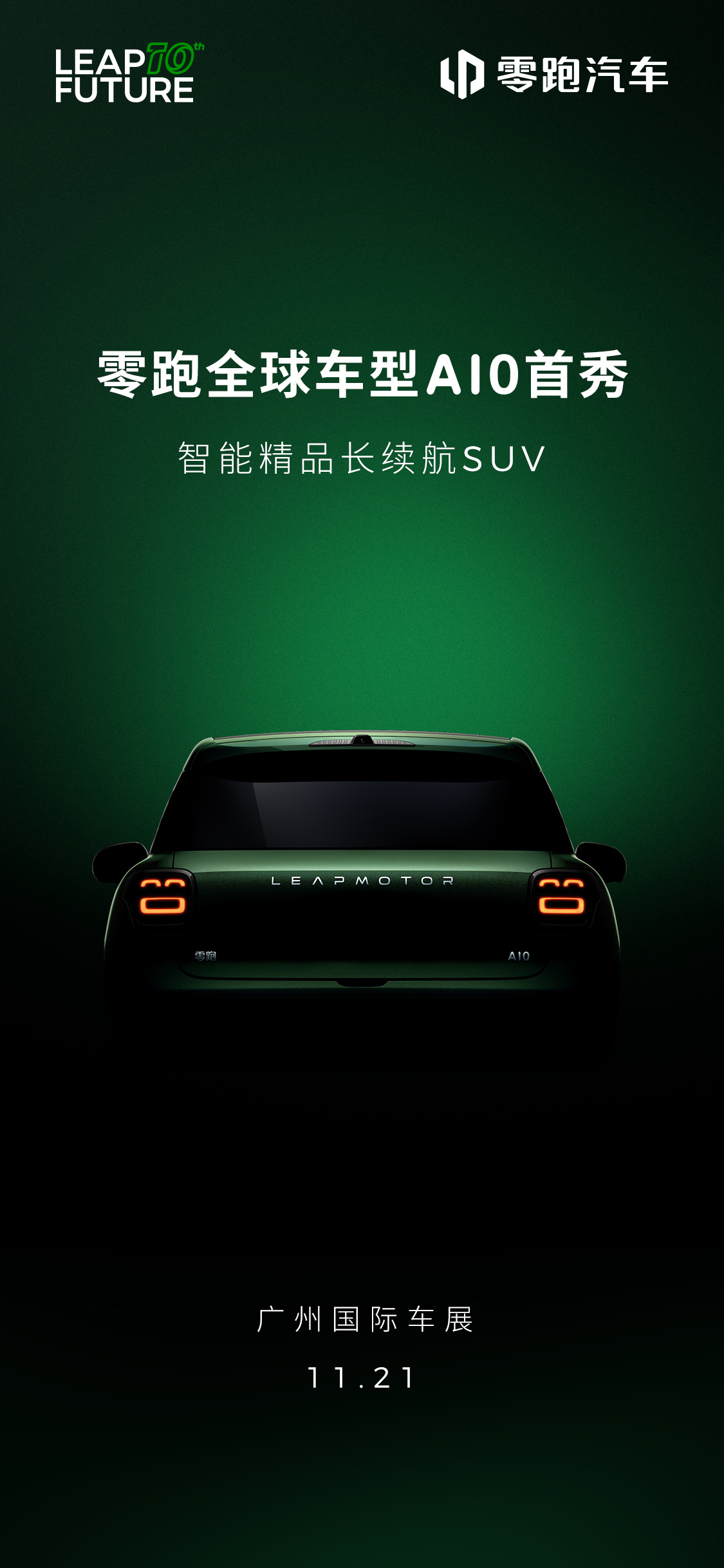 alixixi 11 月 17 日消息,零跑汽车官微今天上午宣布,旗下全新的“智能精品长续航 SUV”—— 全球车型 A10 将在 2025 广州车展期间迎来首秀。