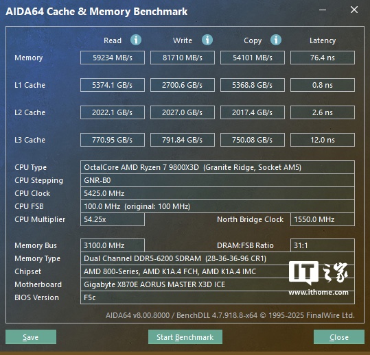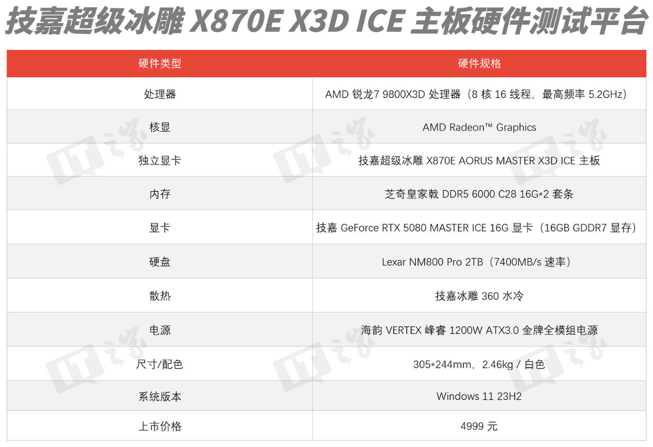 作为定位最高端的旗舰主板,技嘉 X870E X3D 超级冰雕是专为 X3D 后缀的 AMD Ryzen 旗舰 CPU 所打造的,因此我们这次搭配了锐龙 7 9800X3D 这颗 CPU 来进行实测。