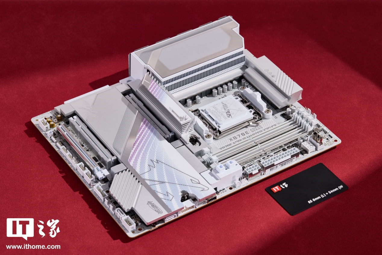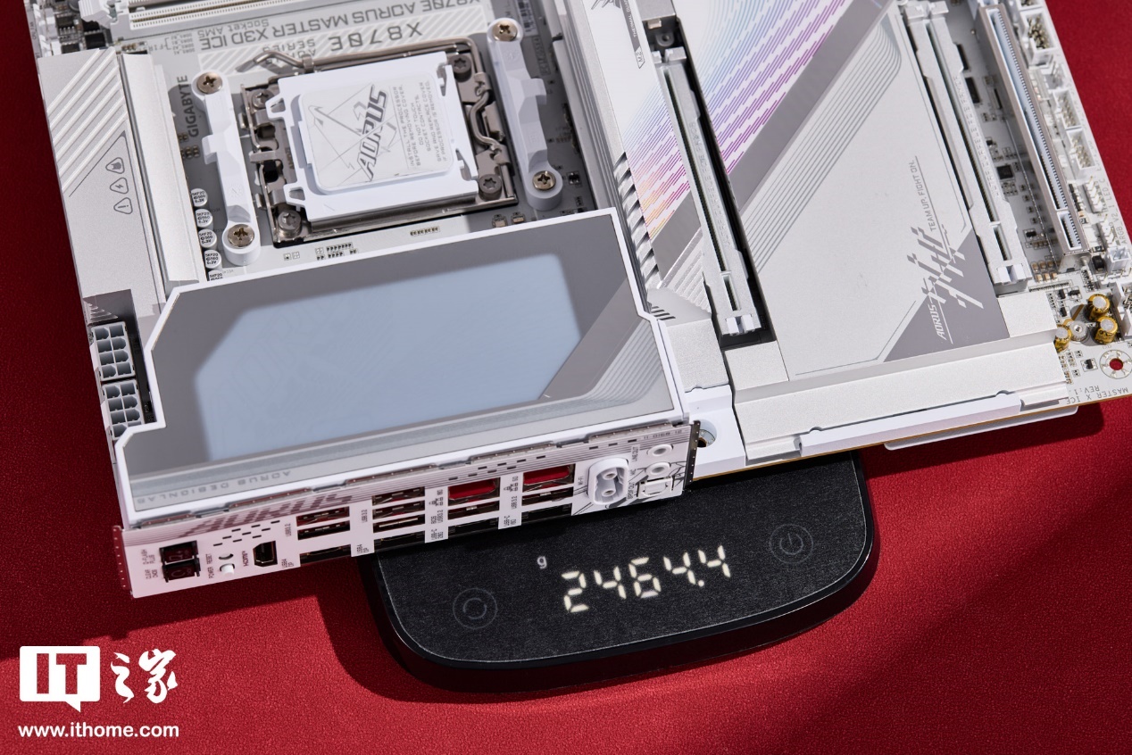 尺寸方面,技嘉 X870E X3D 超级冰雕主板是标准的 ATX 大板,长宽为 30.5*24.4cm,重量约 2.46kg。