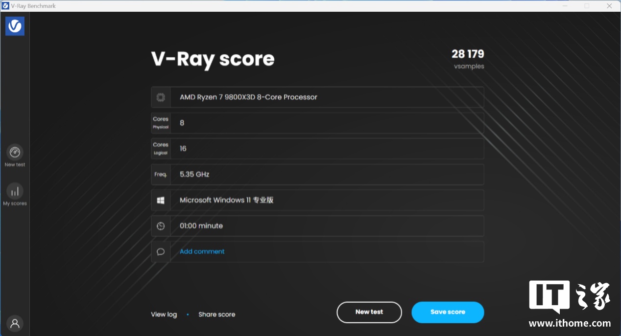 锐龙 7 9800X3D 在「标准」模式下 CPU 综合得分 28179 分;