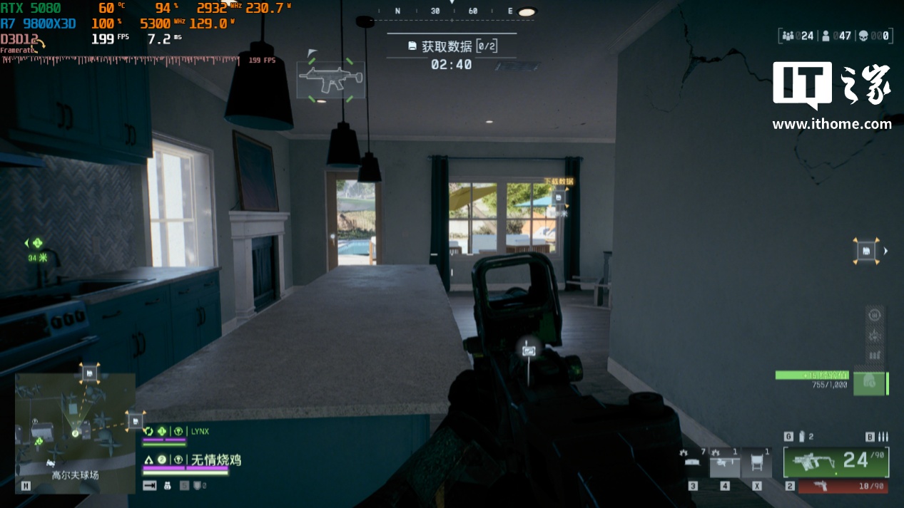第二款游戏是《战地风云 6》,以 1080P 分辨率 + 极致画质预设,进行一局大逃杀模式对战: