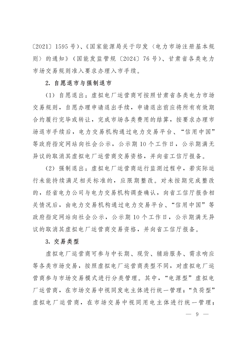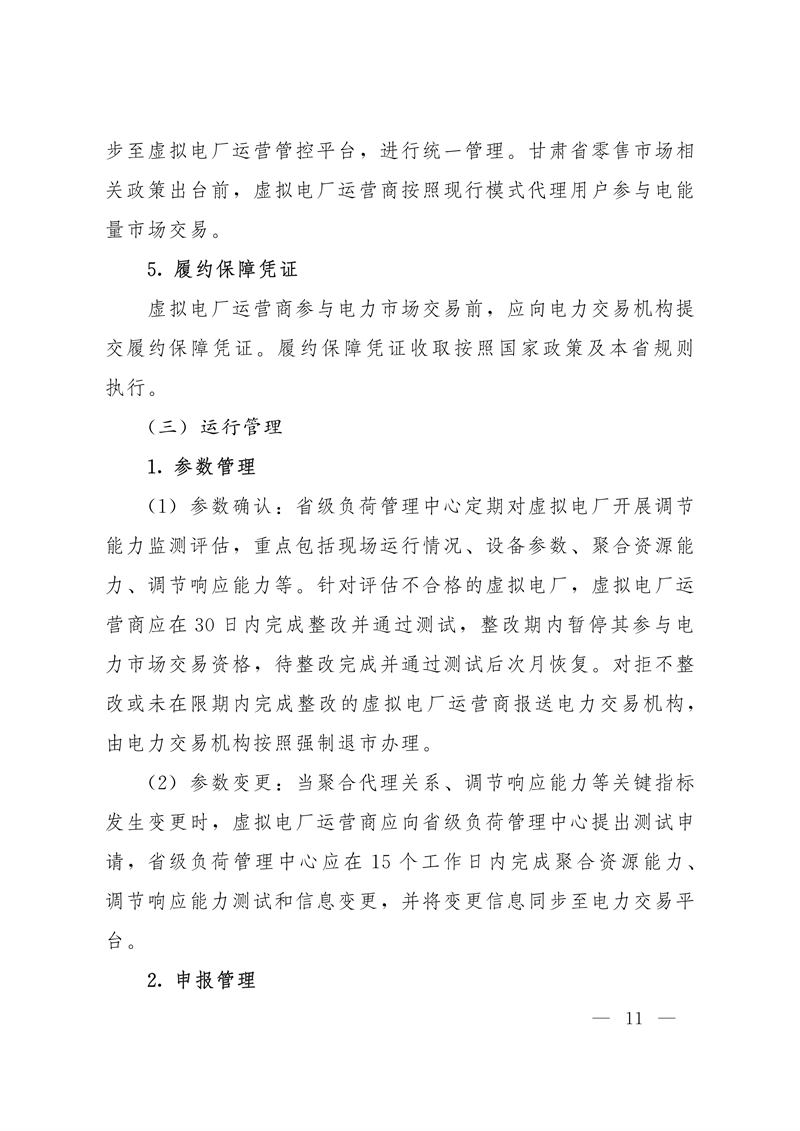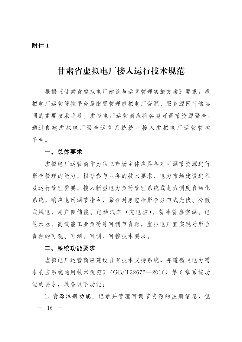 为推动我省虚拟电厂建设发展,省工信厅依据《国家发展改革委 国家能源局关于印发<电力负荷管理办法(2023年版)>的通知》(发改运行规〔2023〕1261号)、《国家发展改革委等部门关于印发<电力需求侧管理办法(2023年版)>的通知》(发改运行规〔2023〕1283号)、《国家发展改革委 国家能源局关于加快推进虚拟电厂发展的指导意见》(发改能源〔2025〕357号)等文件精神,在征求省发展改革委、省能源局、甘肃能源监管办等单位和有关企业意见的基础上,对《甘肃省虚拟电厂建设与运营管理实施方案(试行)》(甘工信发〔2024〕252号)进行修订完善,现予以印发实施。该方案自印发之日起实施,有效期5年,原《甘肃省虚拟电厂建设与运营管理实施方案(试行)》(甘工信发〔2024〕252号)同时废止。
