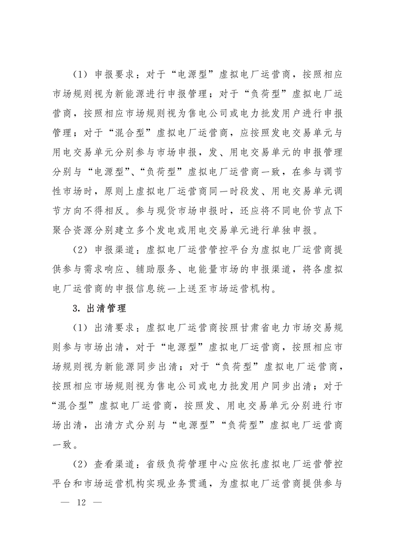 甘肃省工业和信息化厅关于印发《甘肃省虚拟电厂建设与运营管理实施方案》的通知