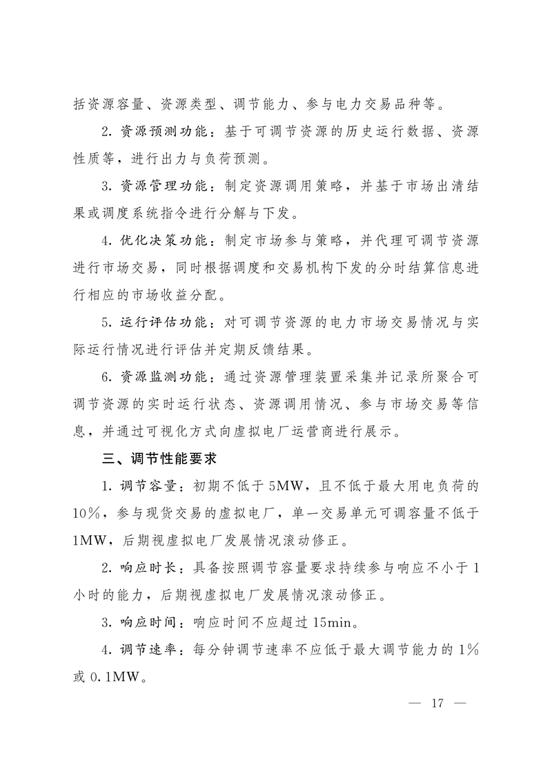 11月14日,甘肃省工业和信息化厅印发《甘肃省虚拟电厂建设与运营管理实施方案》的通知,通知指出,虚拟电厂运营商作为独立市场主体应具备对可调节资源进行聚合管理的能力,根据参与业务的技术要求、电力市场建设进程及运行管理需要,接入新型电力负荷管理系统或电力调度自动化系统,响应电网调节指令,聚合对象包括聚合分布式光伏、分散式风电、用户侧储能、电动汽车 (充电桩)、蓄冷蓄热空调、电热水器、高载能工业负荷等可调节资源,虚拟电厂宜实现对聚合资源的可观、可测、可调、可控技术要求。