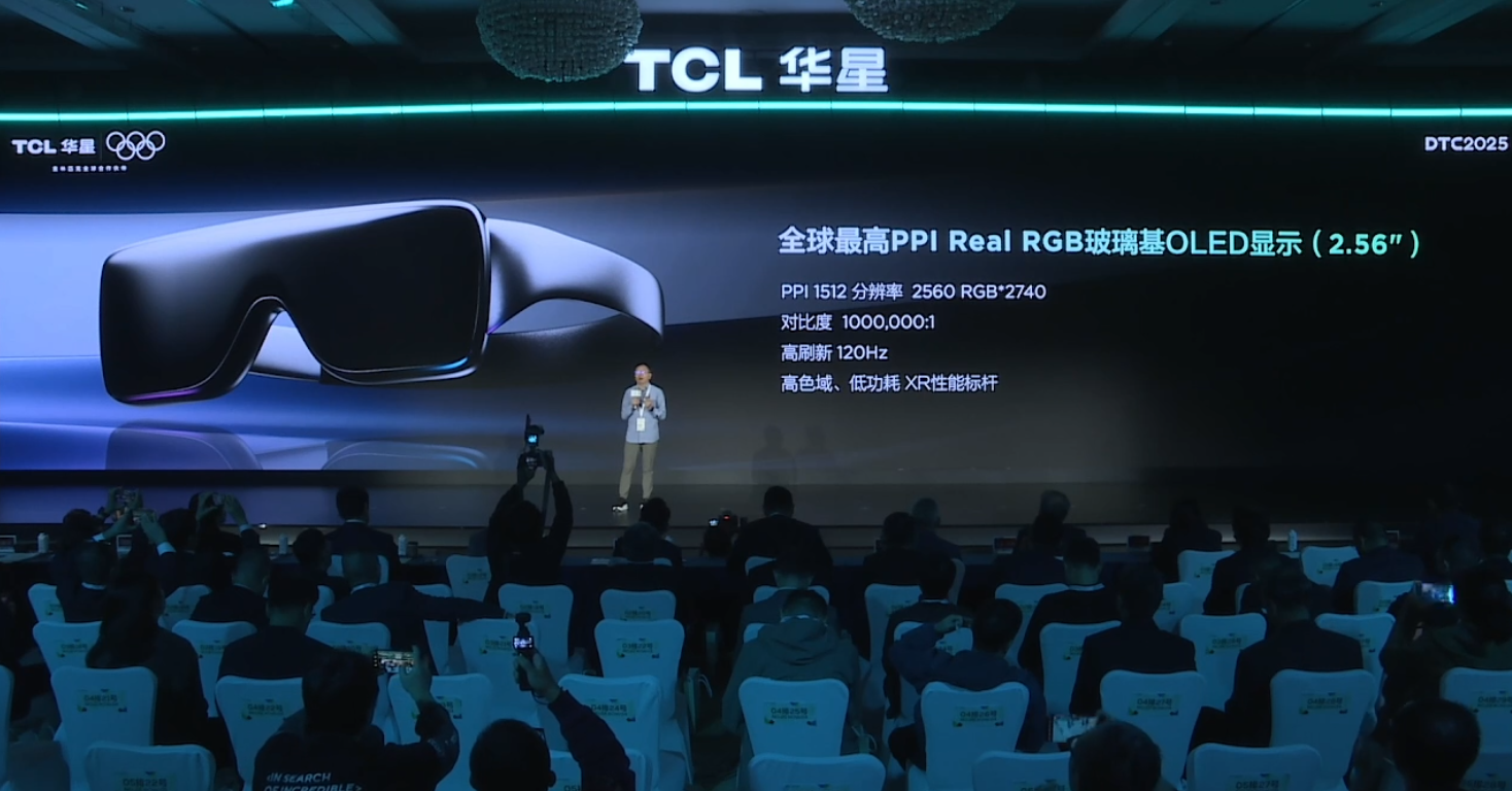 11月14日,在TCL华星全球显示生态大会(DTC2025)上,TCL华星推出了一款突破性的0.28英寸全彩硅基Micro LED显示产品和全球最高PPI的real RGB玻璃基OLED产品。
