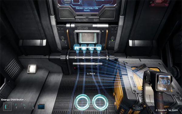 使用能源分配面板将电力传输到A、B、C或D线路。能源分配器可用于可视化并更改电力通过电力线路的路径。