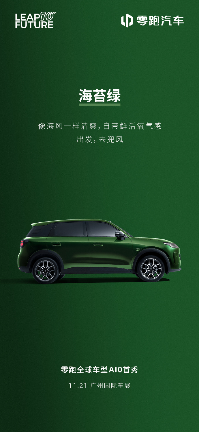 alixixi 11 月 18 日消息,零跑 A10 将于 11 月 21 日开幕的 2025 广州车展迎来全球首秀,官方今日公布新车的两款配色 —— 海苔绿、橡果棕。