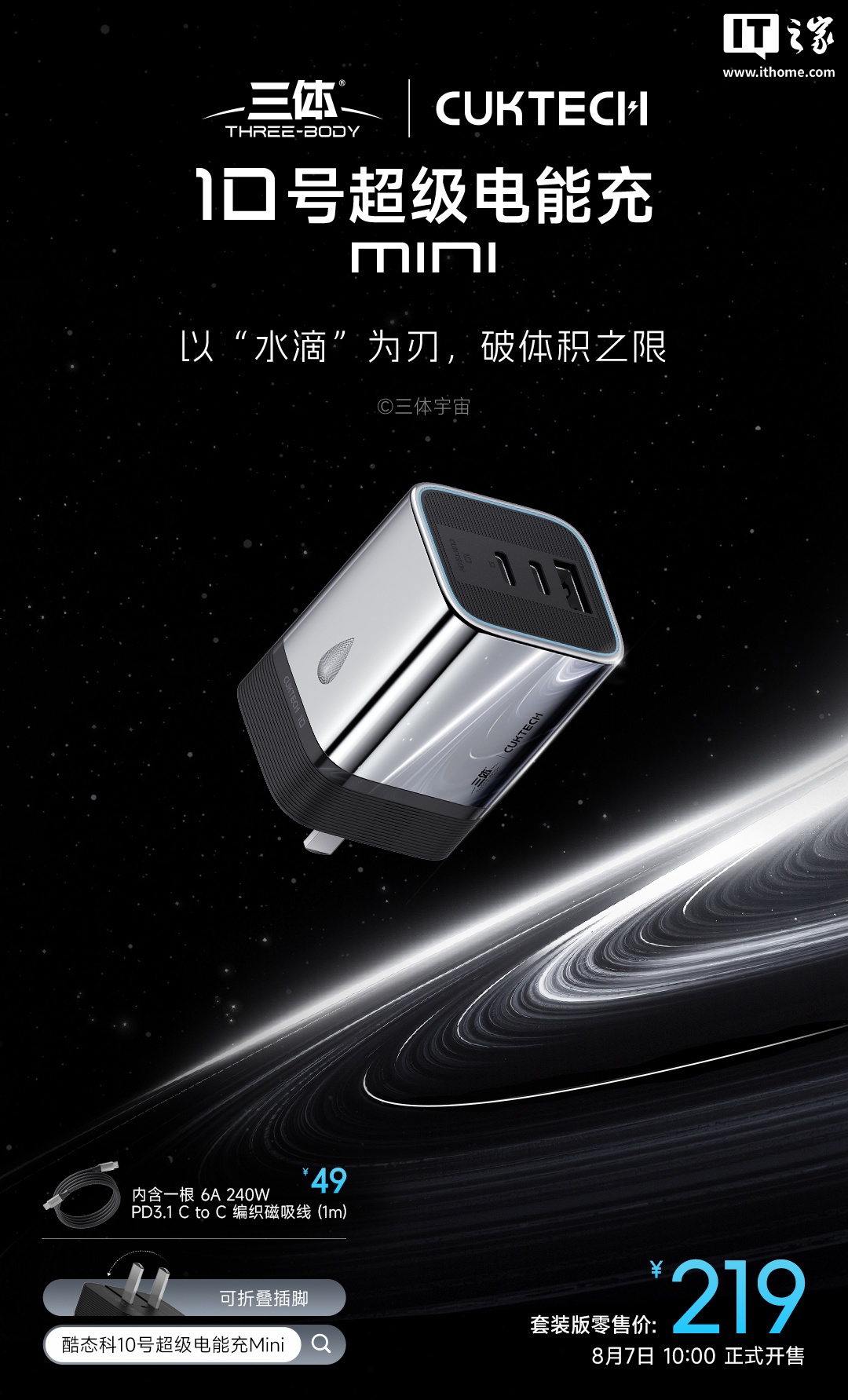 据alixixi此前报道,今年 7 月,酷态科曾推出酷态科 10 号超级电能充 Mini 太空系列三体联名,首发价 219 元。