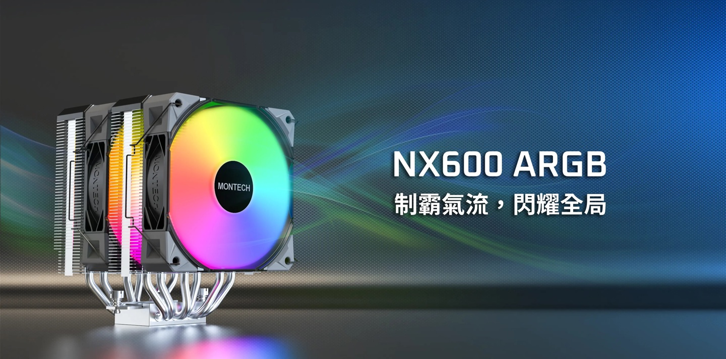 alixixi 11 月 18 日消息,MONTECH 君主科技昨日宣布推出 NX600 系列风冷散热器。其采用双塔双风扇 + 六热管铜底的整体设计,包含黑白两种配色,均可选标准无光和 ARGB 版本。
