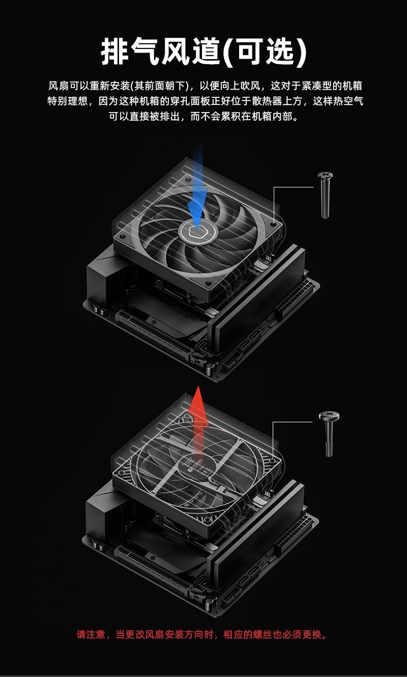 而除标准的下吹式风向布局外,IS-77-XT BLACK 还可配置为上吹排气模式,在紧凑型机箱中能直接将热空气从 MESH 面板排出。