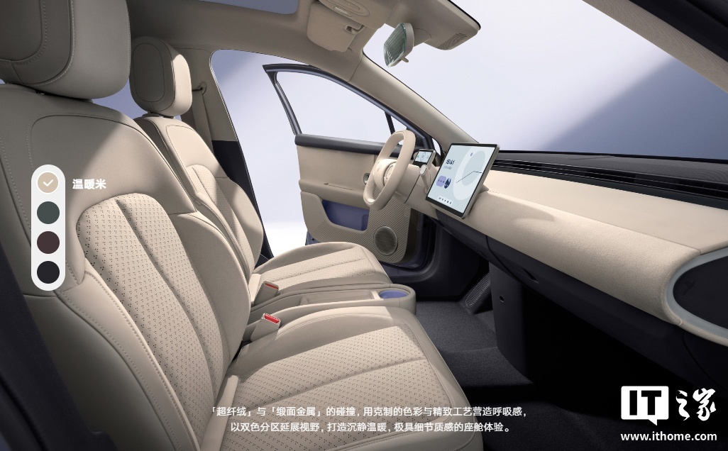 该车前排中岛扶手可抬起,贯穿空间设计、双侧随心进出;前排置杯架下方配备抽屉组,可随心存放物品;50W 无线快充舱,配备斜线设计防滑凹槽。alixixi注意到,该车还配备了磁吸式锚点系统,可搭配纸巾盒、置杯架、眼镜架、储物盒等配件使用。