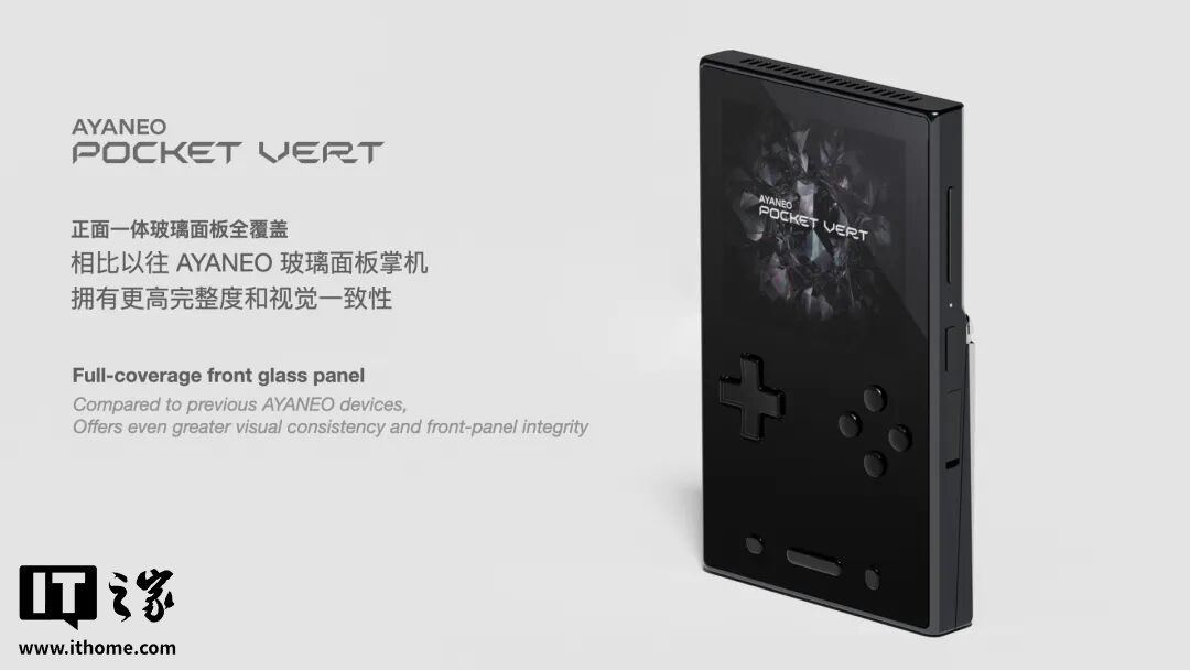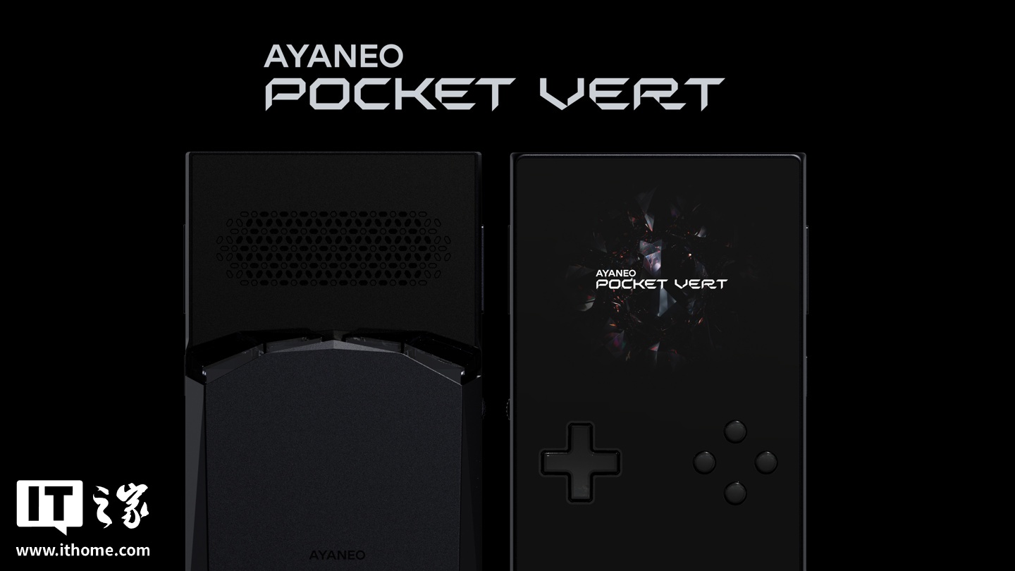 alixixi 11 月 19 日消息,AYANEO Pocket VERT 复古掌机已于昨晚正式亮相,新机属于 AYANEO 品牌打造的最新高端精品竖版掌机,采用小巧机身设计,尺寸为 86.4×143×20.5mm。