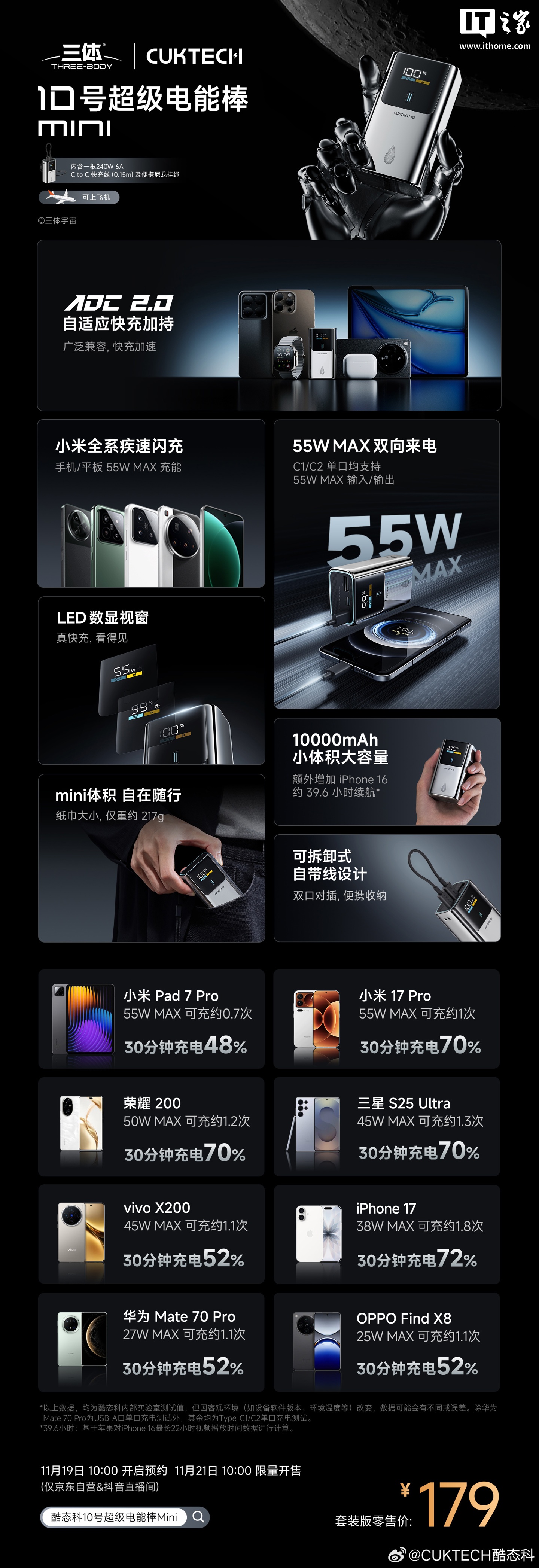 11 月 19 日消息,小米生态链企业酷态科今日发布了两款“太空系列三体联名版”新品: