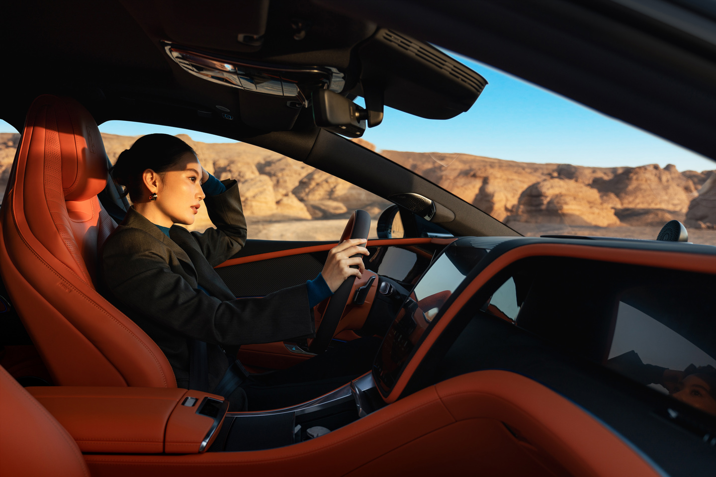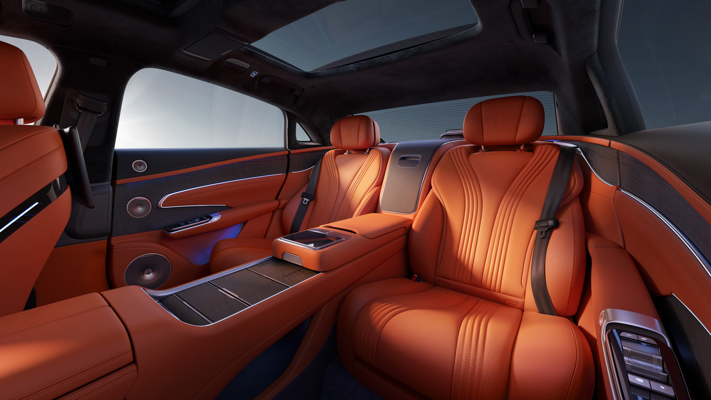 新车全系标配 Nappa 真皮座椅,支持通风、加热与按摩功能,四座版更配备后排双悬浮屏与双冰箱,车载丹拿铂金证据系列音响。