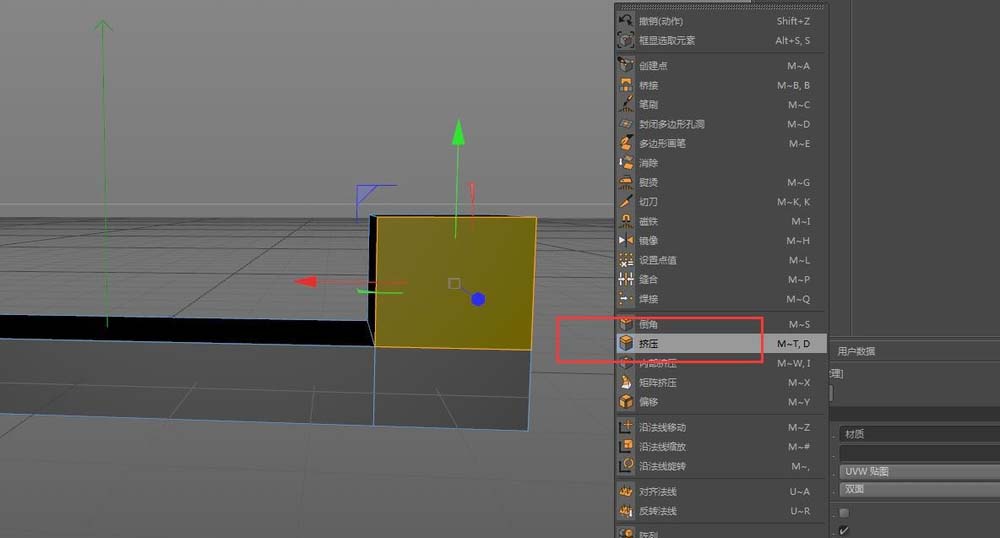 7、右键选择挤压,然后在空白处按鼠标左键进行挤压。