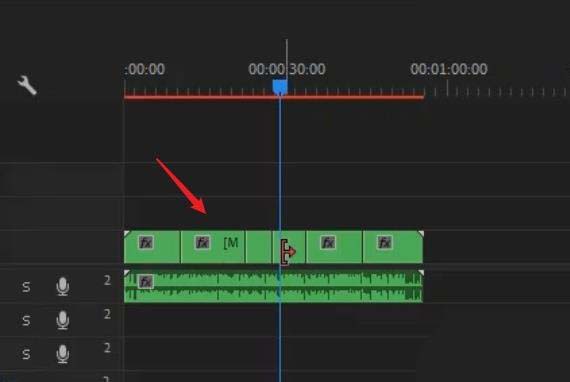 8、完成后就可以看到轨道中,各个切换镜头的位置都有切剪辑的线。