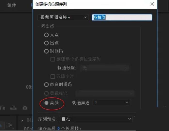 3、打开创建窗口,在同步点中选择“音频”,所以我们在拍摄视频的前要录个打板的声音,就跟拍电影一样。