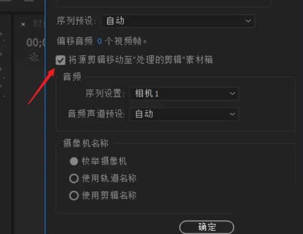 4、勾选上“将原剪辑移至处理的剪辑箱”,这样就会自动把视频素材进行一个归类。