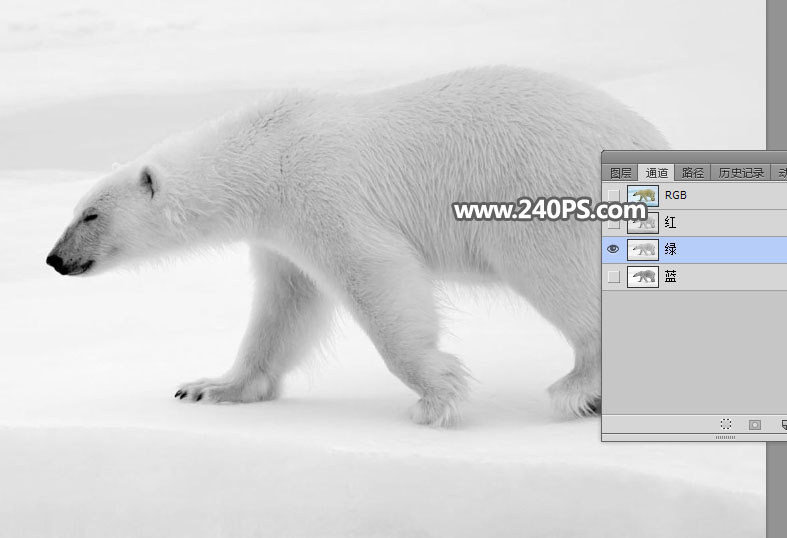 Photoshop巧用通道抠图快速抠出毛茸茸的北极熊,教程使用的北极熊素材背景比较暗,前期我们要观察通道,然后选择主体与背景色差最大的通道,再用调色工具把边缘的毛发与背景分离,最后提取出高光部分就可以抠出北极熊了。好了,话不多说,下面让我们开始吧!