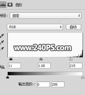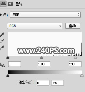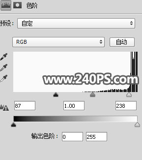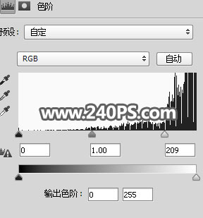 10、创建色阶调整图层,把高光调亮一点,参数设置如下图,确定后把蒙版填充黑色。