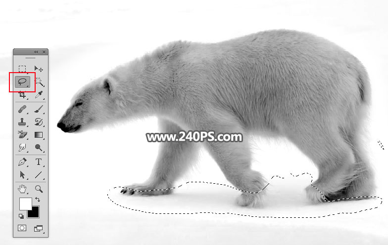 13、新建一个图层,用套索工具把熊以外的背景选取出来,并填充白色,然后取消选区。