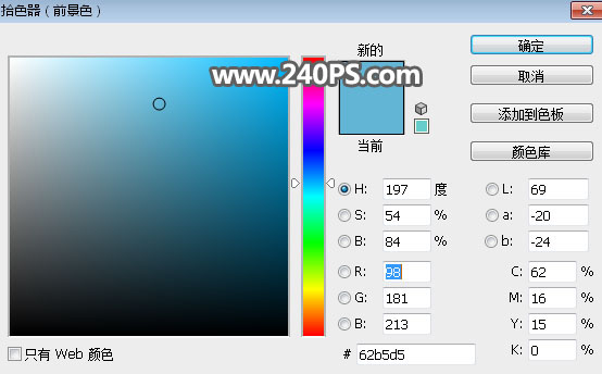 19、创建纯色填充图层,颜色设置为青蓝色#62b5d5。