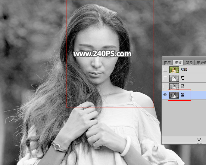 6、红通道还比较理想。选择红通道,按Ctrl + A 全选,按Ctrl + C 复制。