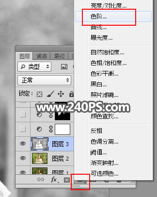 8、现在来调整发丝与背景颜色。点图层面板下面的按钮,选择“色阶”,如下图。